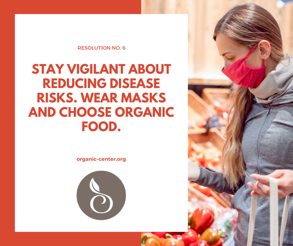 Six: Stay vigilant about reducing disease risks. Wear masks AND choose organic food.