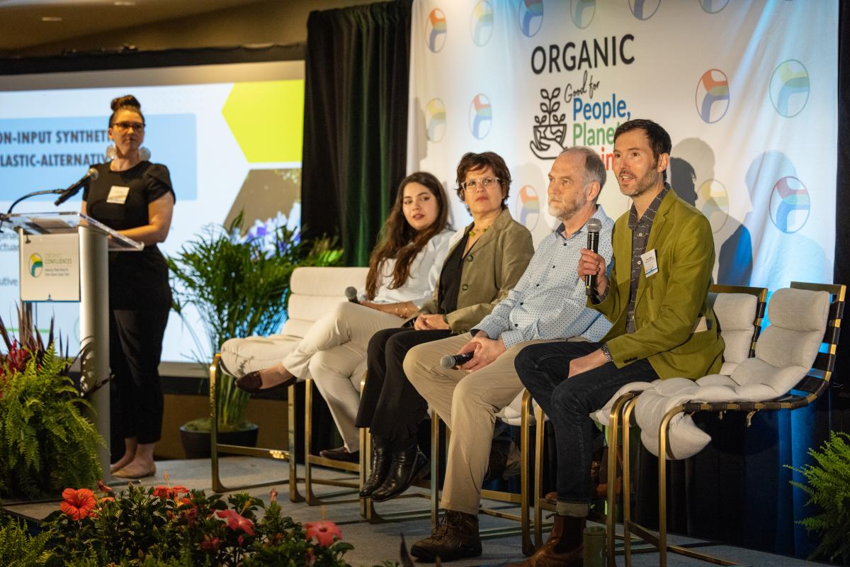This session explored the need for a future framework in developing discussions around non-input use of synthetic, recycling, and plastic alternatives in organic. Panelists discussed the complexities of expanding the perspective of organic to include non-input synthetics and discussed who needs to be included in collaborative efforts to make large shifts in plastic use, including artist and general public engagement.