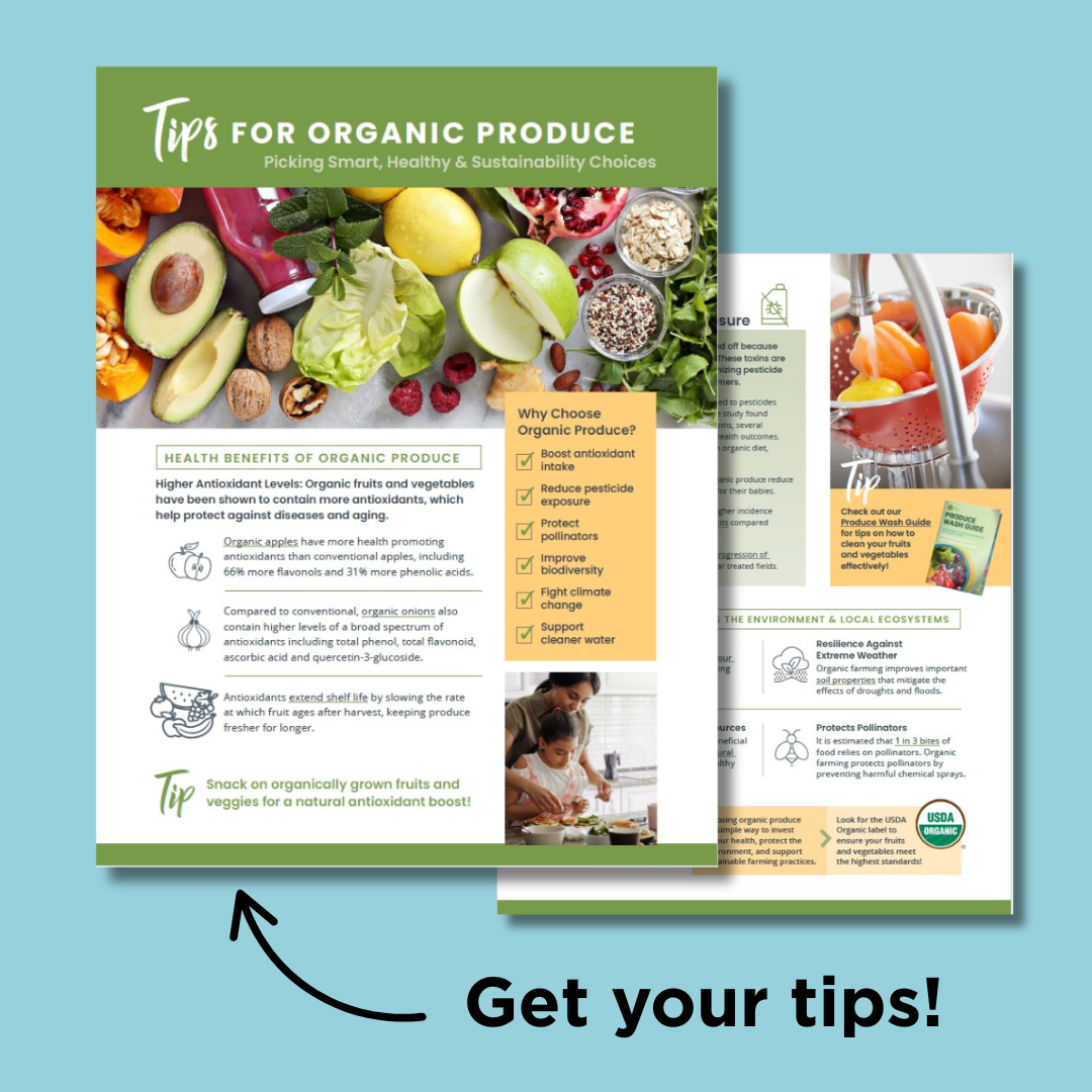 Download our new tip sheet on organic produce! Learn about the health benefits, environmental impact, and purity of organic options – all in one quick guide!