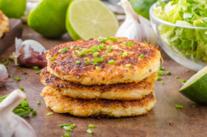 - Heat a large skillet coated with oil to medium-high and add the patties to the preheated pan. Cook until golden and use a wide spatula to flip. Patties may be soft and delicate so a thin, wide spatula is best. Cook until golden brown on the other side, and place on a cookie sheet/baking pan.