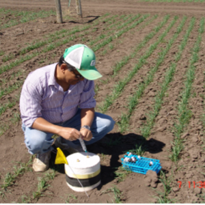 Photo Credit: Upendra Sainju. Dr. Sainju sampling greenhouse gases using a static chamber.