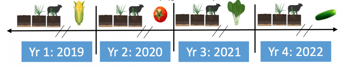 Researchers will measure changes in soil health indicators over two years of grazed cover crop-vegetable production, and assess benefits and potential tradeoffs of vegetable cash crop productivity.