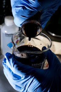 Dr. Ghabbour pours humid acid gel from soil. Photo by Matthew Modoono/NEU